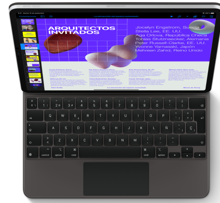 También es compatible con el teclado Magic Keyboard, que te permite trabajar con el perfectamente. El Magic Keyboard incorpora un trackpad para ampliar el horizonte de posibilidades.